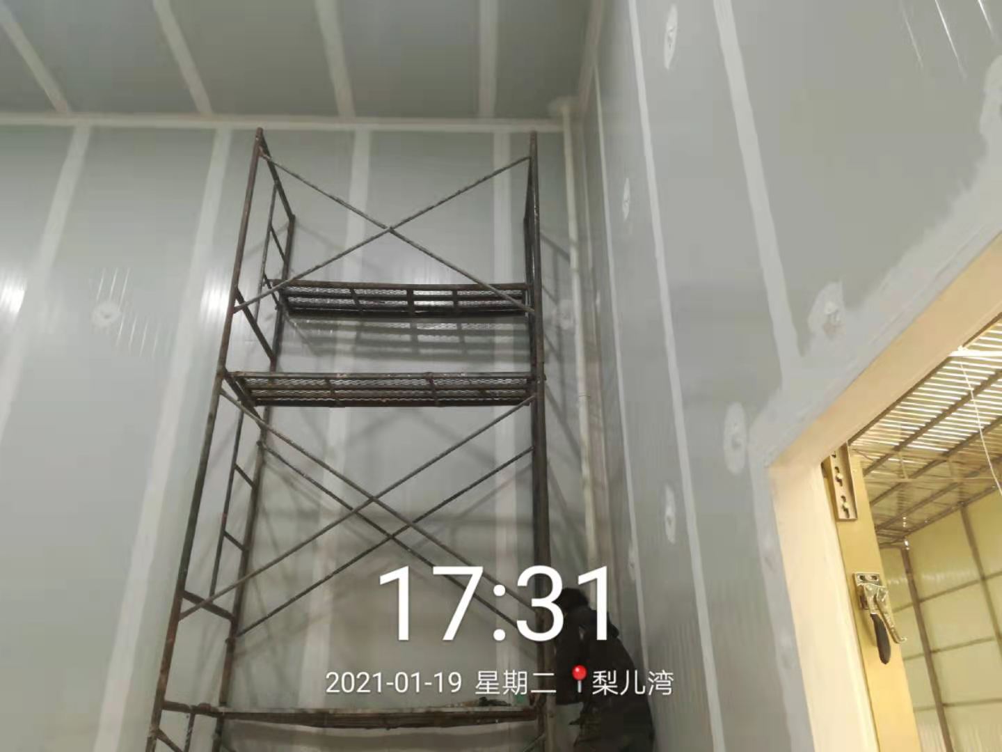 3、库板方面,每间冷库均采用的是100mm聚氨酯双面彩钢板保温库板,该保温板具有防潮、防水、防火等特点,阻燃标准为B2级,从而在确保实现冷库稳定低温环境的同时极大地降低了后期运行成本。